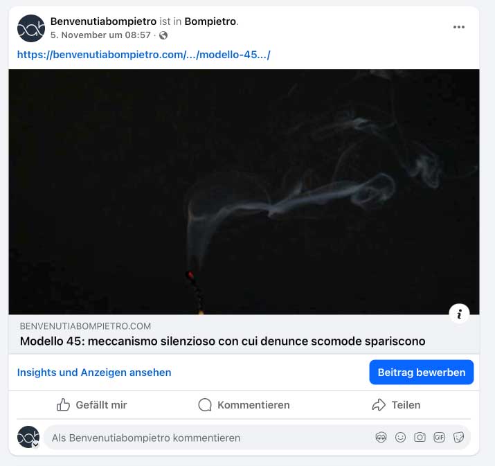 Il link era inserito in modo che nemmeno si vedesse l’anteprima.